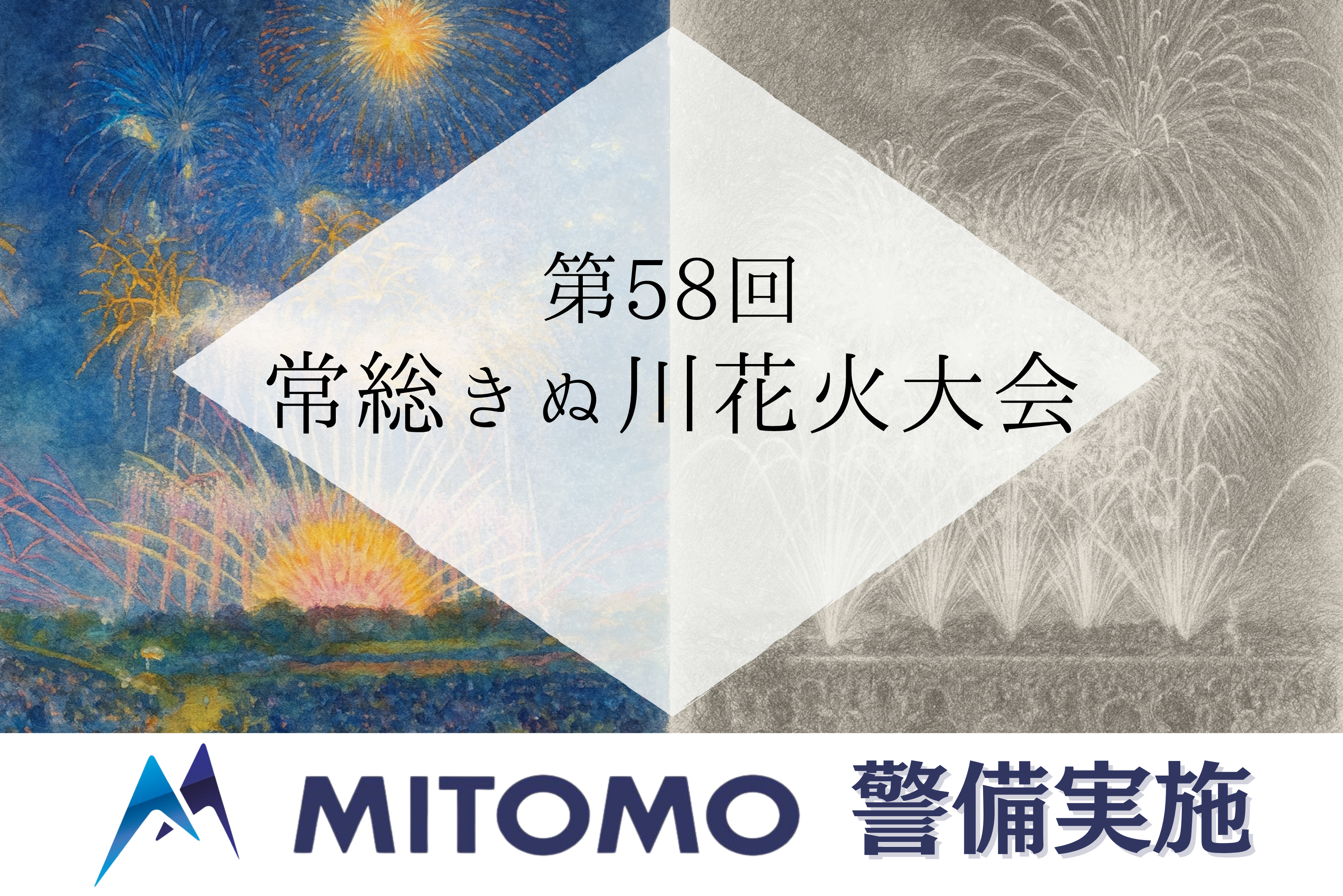 令和7年9月20日(土)に開催された「第58回 常総きぬ川花火大会」において、会場での雑踏警備及び会場周辺交通規制に伴う交通誘導を担当いたしました。