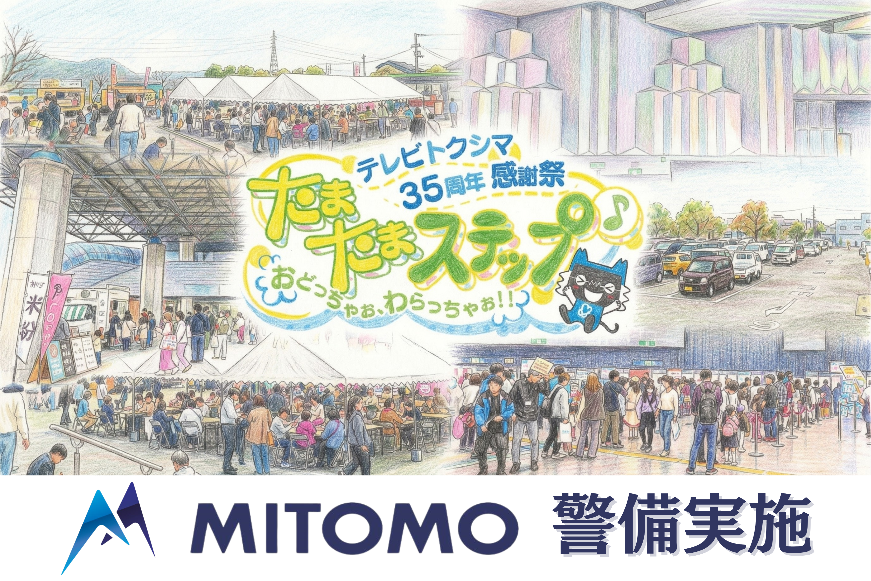 2026年3月29日(日)にアスティとくしまで開催された、テレビトクシマ35周年感謝祭「たまたまステップ♪おどっちゃお、わらっちゃお!!」において、弊社は会場周辺の交通誘導および駐輪場における警備業務を担当いたしました。